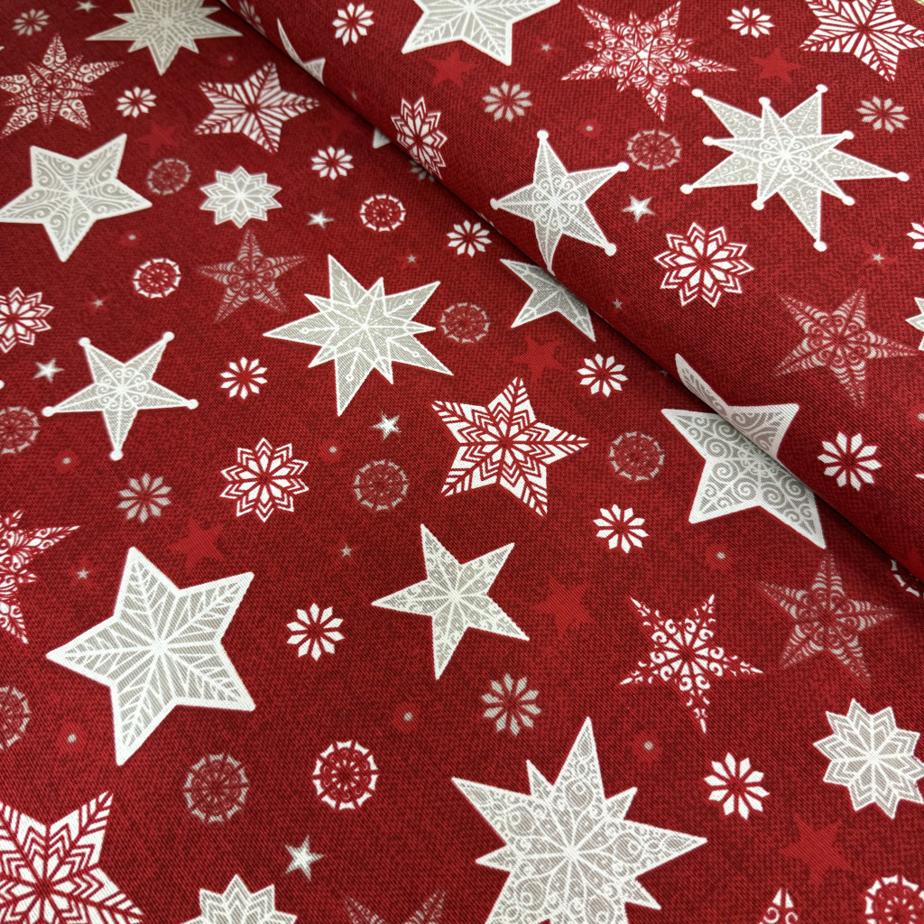 Karácsonyi loneta piros, fehér csillagos